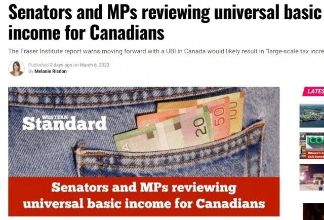 加拿大参议院和国会正在就全民基本收入(Universal Basic Income,UBI)提交审议的两项法案进行辩论。菲莎研究所(Fraser Institute)最新报告警告说,一旦实施全民基本收入可能会导致赋税大幅上涨。