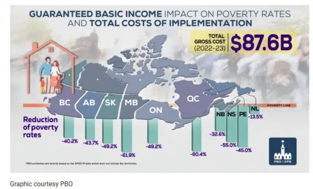加拿大国会预算官(PBO)去年4月发布的报告称,全民基本收入计划在2022-2023财年将花费纳税人876亿元。PBO根据安省2017年基本收入试点项目中设定的参数对该计划进行了分析,评估该计划实施后将带来的贫困率降低水平。