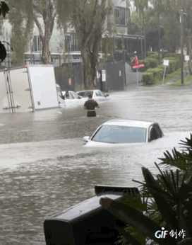 道路上的车都被淹没。