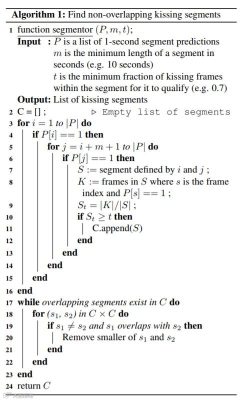 寻找非交叉接吻动作分割片段的算法伪代码