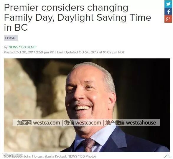 BC省长贺谨接受本地英文传媒专访时表示,正在考虑将二月份的家庭日假期更改至与全国其他省份一致,并可能取消夏令时间。