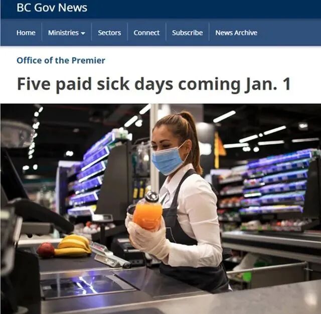 这将成为BC省有史以来的首个省级病假制度,并在全加拿大范围内,成为第一个实施5天带薪病假的省份。