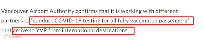 在联邦政府宣布正在考虑收紧入境政策之后,温哥华国际机场(YVR)立即采取了行动,在本周一(12月6日)率先更新了入境指南——将对所有入境的国际航班旅客实施落地检测!包括已完全接种的人!