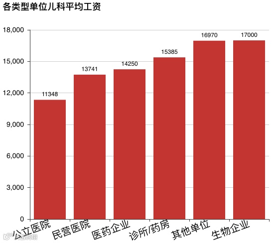 可以看到,儿科医生的工资,其实是被民营医院生生拉高了!公立医院的儿科医生工资,也就是个平均水平。这也侧面说明了,儿科医生其实价值是很高的,而民营医院更愿意把这个价值以工资的形式转移给儿科医生。
