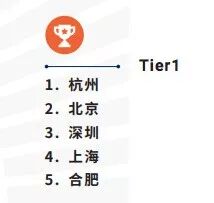 第一档:杭州、北京、深圳、上海和合肥,这五座城市成为中国最领先的人工智能计算力城市。