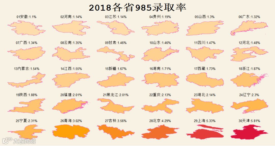 下面就为大家对比各个省份2018年的985、211录取率: