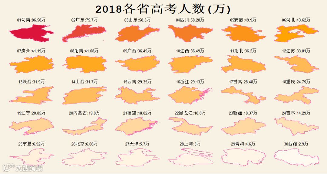 同样,我们看下各省2018年参与高考的人数: