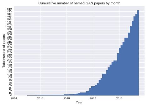 CPU 的速度不再呈指数增长了,但是关于生成对抗网络的学术论文却在持续增加。生成对抗网络一直是学术界的宠儿。尽管它的实际应用似乎很少,并且在 2018 年也鲜有变化。但是生成对抗网络还是有着待实现的惊人潜力。