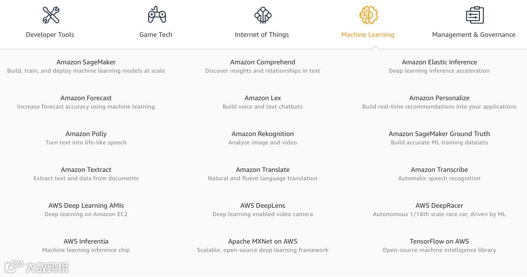 过去一年里,我们见证了更多的人工智能解决方案被打包成 API,供没有斯坦福大学机器学习博士学位的软件工程师使用。Google Cloud 和 Azure 都已经改进了旧服务并添加了新服务。AWS 机器学习服务列表也开始看起来有点吓人了。