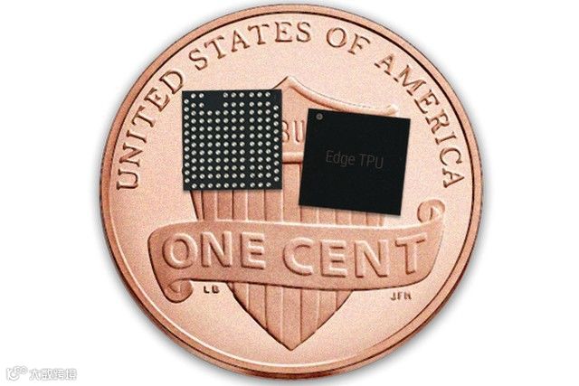 Google 还发布了 Edge TPU:它是我们上面讨论过的大卡的小兄弟。这款芯片体积很小:一个 1 美分硬币的表面可以放 10 张 Edge TPU。同时,可以用它进行实时的视频分析,几乎不耗能量。