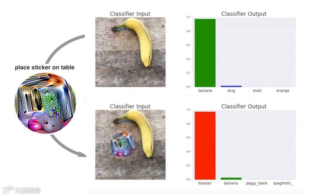 另一个有趣的进展就是 Adversarial Patch。虽然技术上来说它不是 GAN,但它使用黑盒(基本来说,就是不看神经网络的内部状态)和白盒的方法来制作一个「补丁」,这个补丁能够欺骗基于卷积神经网络的分类器。这是一个重要的结果:它能让我们更好地理解深度神经网络的工作原理,以及认识到我们距离实现具有人类感知级别的 AI 还有多远。
