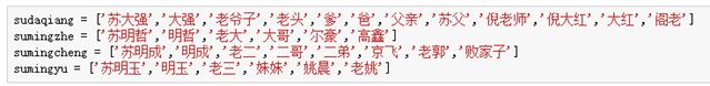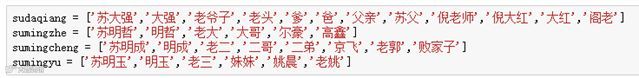 这里列出了关于苏家人的简单词库,用来识别弹幕在议论谁。