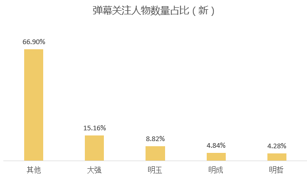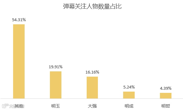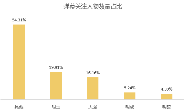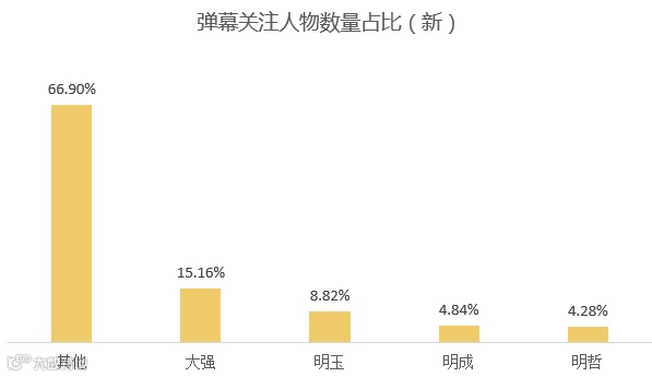 明玉竟然抢过了大强的宝座,以 19.91% 的弹幕提及率拔得头筹,而大强则以 16.16% 的关注度紧随其后。