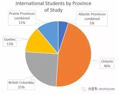 其中,安省、BC省和魁北克省最受留学生欢迎 ,几乎一半的学生都选择在这三个省接受教育。
