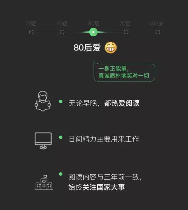 00后喜欢“捂脸”、90后喜欢“笑哭”、80后喜欢“呲牙笑”.....