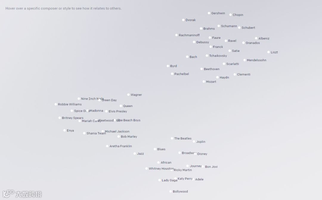 原图为交互图。将鼠标悬停在某个特定的作曲家或风格上可以查看其与其他作曲家或风格之间的关系。