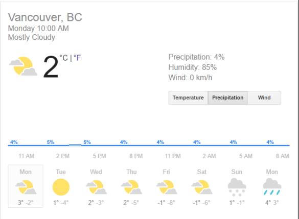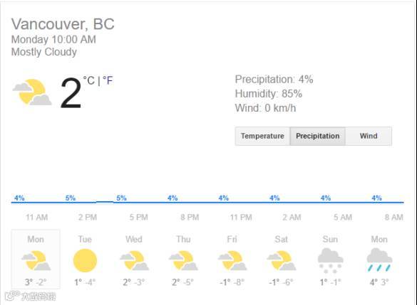 今天开始,气温开始跌至零下,最低可达零下九度! 可喜的是这周的天气都是晴天,大家可以尽情欣赏雪中温哥华~
