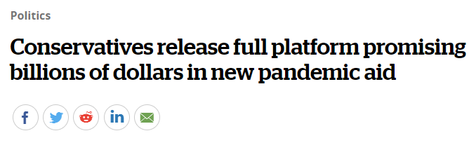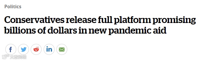 为了获得民心,加拿大保守党还在8月16日公布了160页的完整选举纲领,表达了他们的雄心壮志,并承诺将投入数十亿加元的新支出,以支撑受COVID-19大流行破坏的经济。