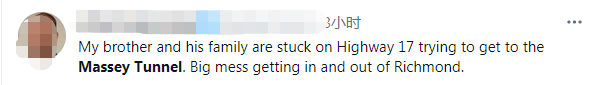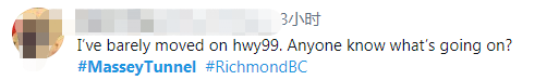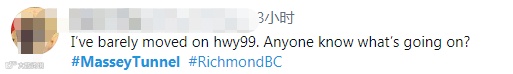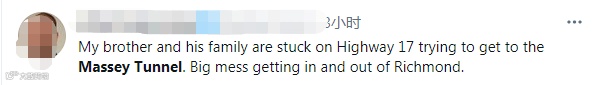 "我哥一家被困在了高速上,Massey隧道进不了,现在列治文的出入口简直是一团糟!"