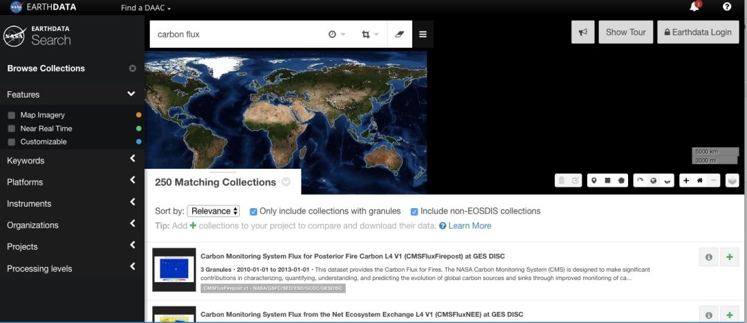 地球观测系统数据和信息系统包含了美国宇航局的地球观测数据,其中包含如 NC 地表温度和碳通量等信息。
