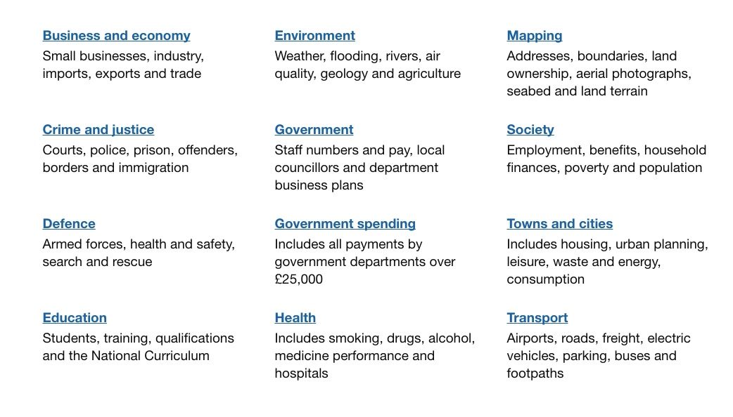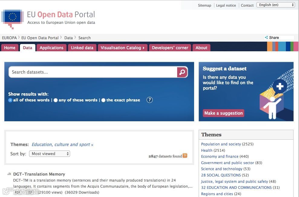 与美国的 Data.gov 类似,该网站允许访问各种主题的数据。这些数据由中央政府、地方当局和公共机构提供。