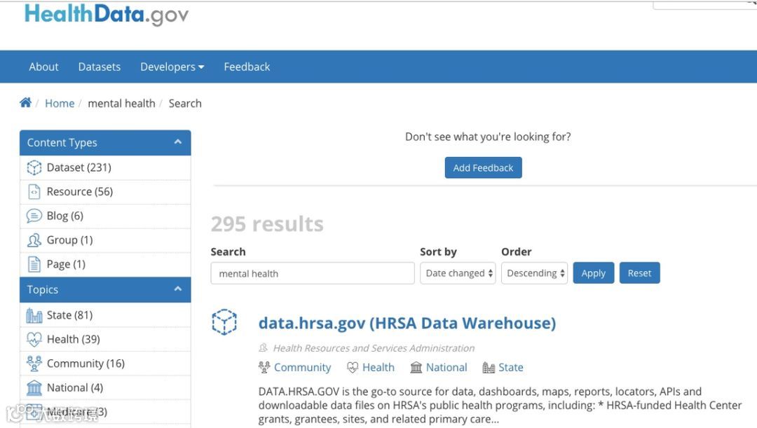 该网站包括各种健康主题,可让你访问大量可浏览和可搜索的数据。甚至可以通过各种与主题相关的网站创建自己过滤的数据集。