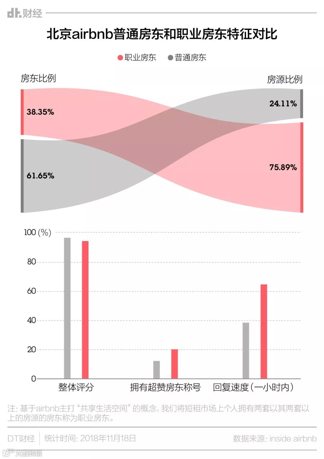 从数据看,北京Airbnb平台上这样的房东数量占比不到4成,但是他们贡献了超过7成的房源。