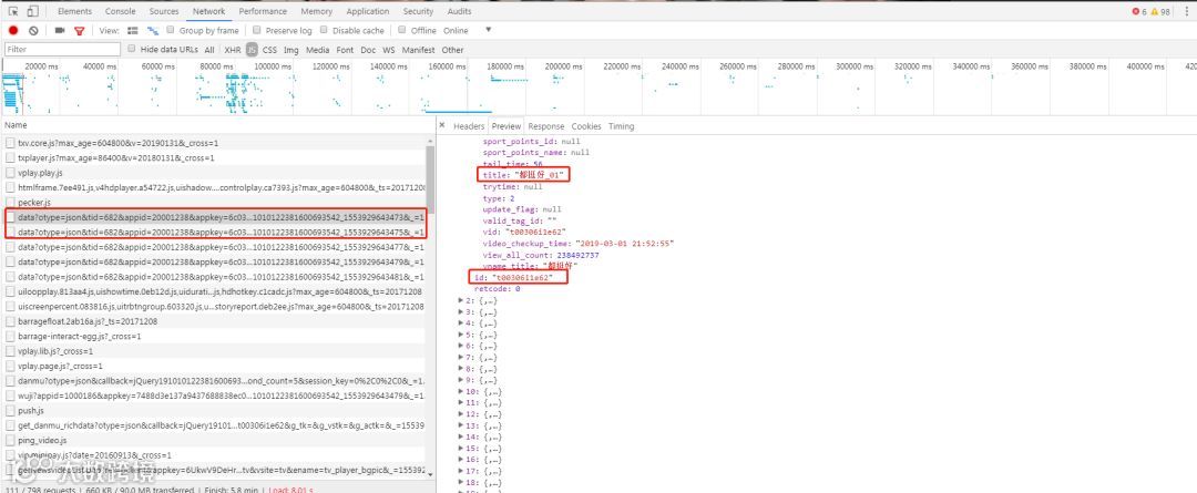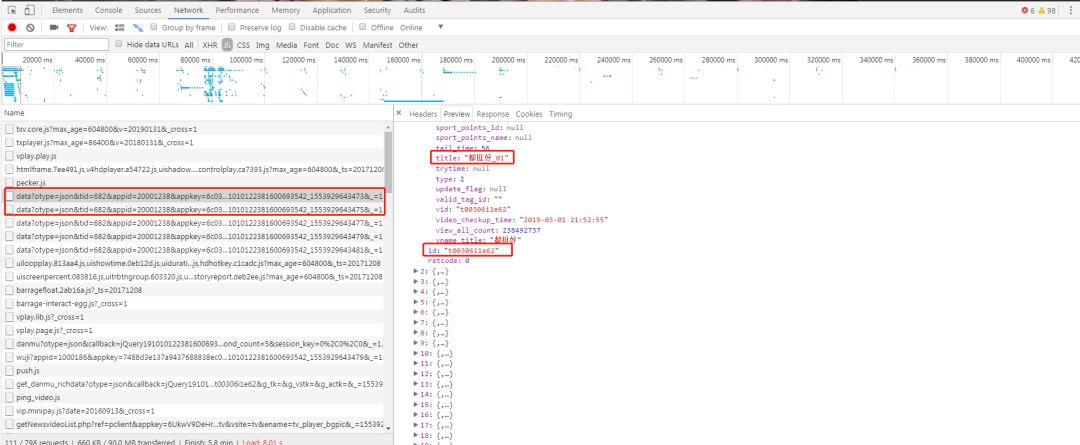 翻了N集来对比,我们发现不同集数之间网址变化的只有传入的这个“vecIdList”,里面的参数正是我们上一步获取的那些后缀ID。