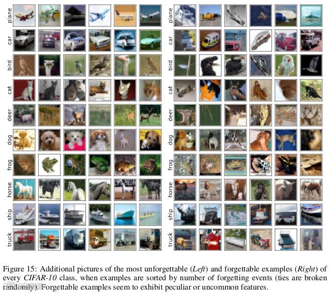 与此相反,不可遗忘样本则编码了绝大部分的冗余信息。如果将样本按其不可遗忘性(unforgettability)进行排序,就可以通过删除绝大部分的不可遗忘样本,而对数据集完成压缩。