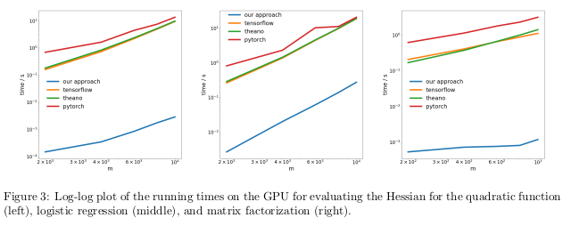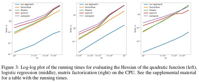在 CPU 上,新方法与当下流行的 TensorFlow、Theano、PyTorch 和 HIPS autograd 等自动微分库相比,要快两个数量级。