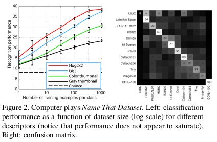 如果图像数据集确实能够表征来自自然世界的真实图像,就不应能够分辨出某个特定图像是来自于哪个数据集的。