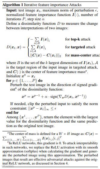 为实现此攻击,研究者所使用的基本方法是 Goodfellow 提出的 FGSM(fast gradient sign method)方法的变体,这是最早的一种为实现有效对抗攻击而引入的方法。这也表明,其他更近的、更复杂的对抗攻击也可以用于攻击神经网络的解释性。