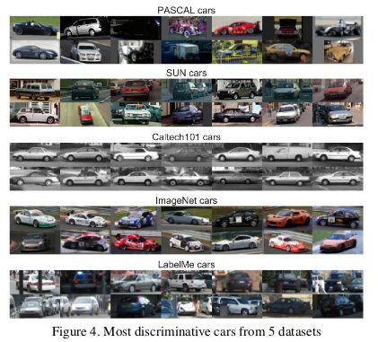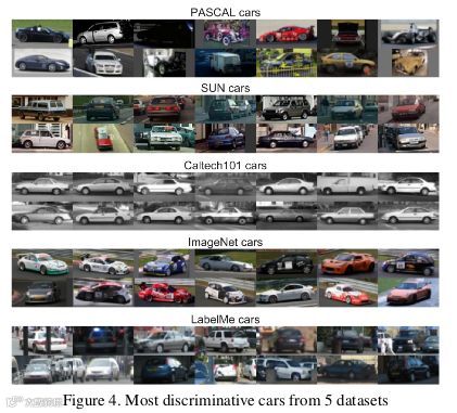 但数据中的偏差,使得每个数据集变得可识别。例如,在 ImageNet 中,有非常多的「赛车」,不能认为这代表了通常意义上「汽车」的理想概念。