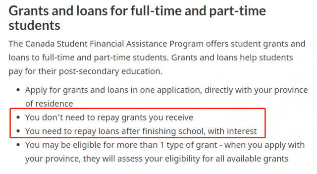 根据联邦政府官网消息,政府目前为学生提供福利金和贷款。学生们可以直接上所在的省政府申请。福利金无需偿还,而贷款需要在完成学业后偿还,并且需要付利息。