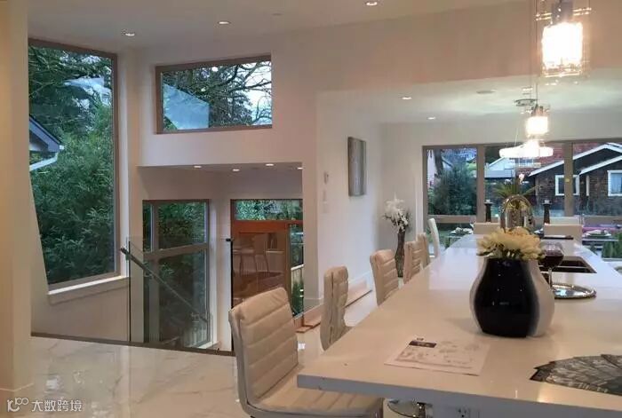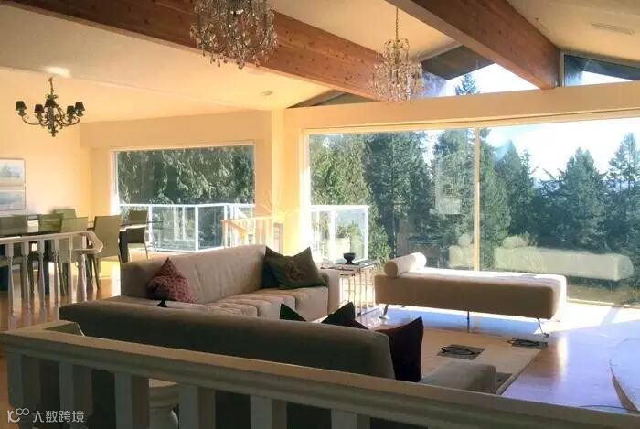 接着晴让我陪她一家去看另一栋山顶新落成的五百六十万开价的房子。一进门,我注意到父子俩眼睛同时发光,客厅是超一百八十度无敌海景,俯瞰温哥华全城。房子里有电梯,上上下下.