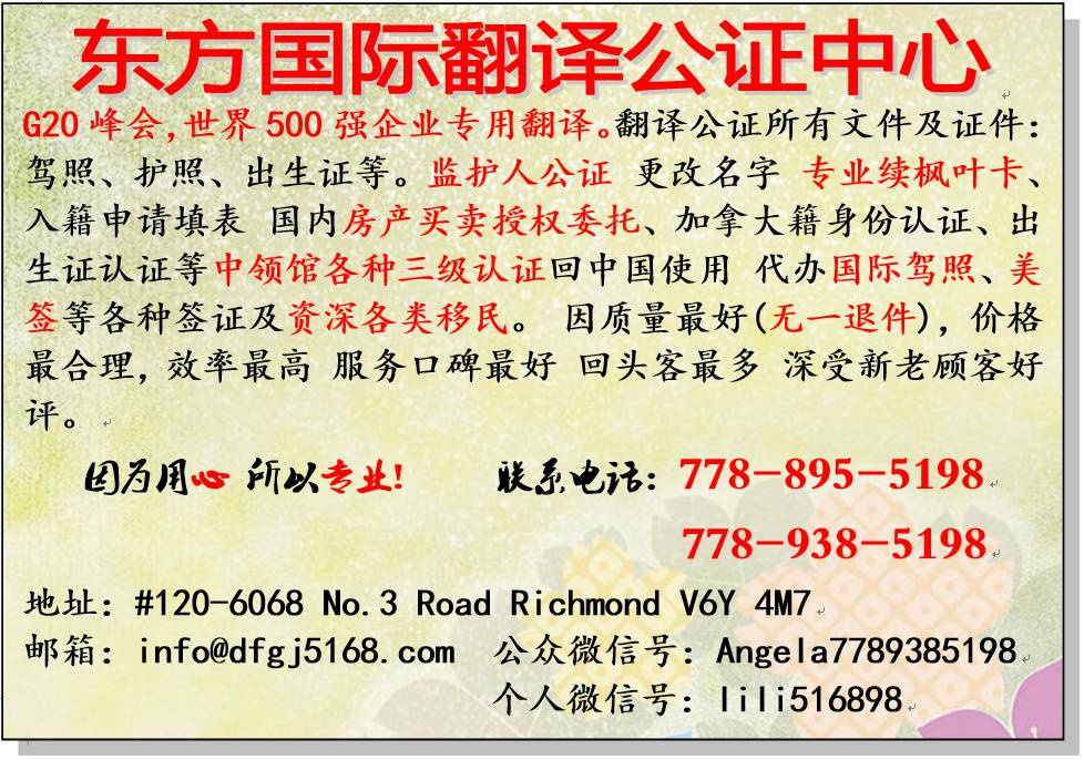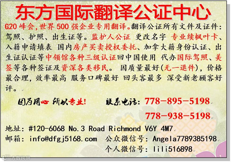 中国领事馆做不了的各种认证文件,本公司都可以做!(因为本公司有BC省认证的大牌西人律师和大牌华人律师)