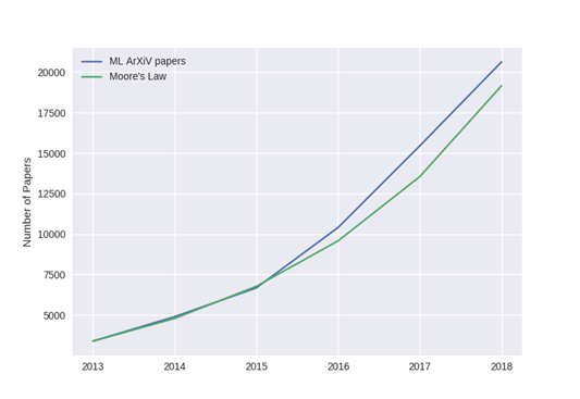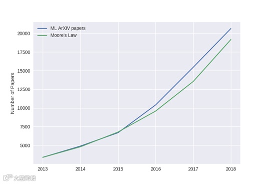 在过去3年中,作者网站上的机器学习论文的数量似乎比摩尔定律的增长速度更快,这让你感觉人们相信这将是未来计算技术价值的出处。