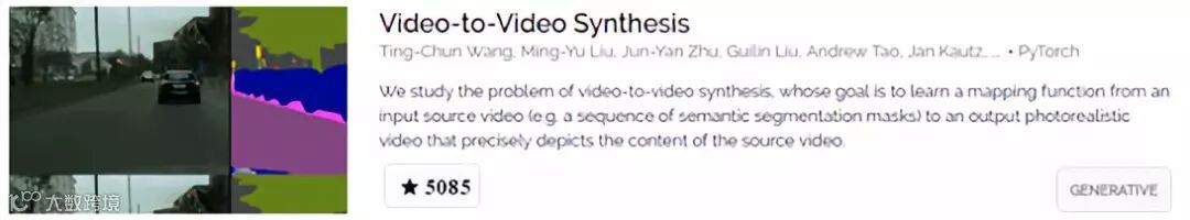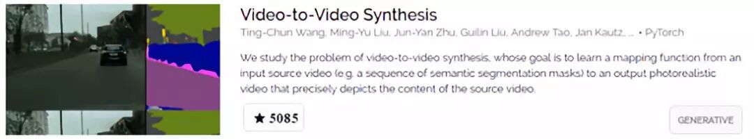 NVIDIA的一篇关于视频到视频合成的论文,是生成建模的又一个惊人结果,生成模型是过去几年中最受欢迎的深度学习领域之一。该文利用新颖的顺序生成器体系结构,以及诸如前景和背景先验等许多其他设计特征,修复了时间不连贯的问题、提高性能。 NVIDIA开源了他们的代码,欢迎程度位居第二。