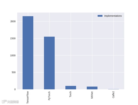 虽然PyTorch并不落后,但网站上的大多数实现似乎都是基于TensorFlow的。其他的框架(MXNet,Torch和Caffe2)在生态系统中的存在要小得多。鉴于两个框架中都发生了变化:TensorFlow正朝着即刻执行和由Keras激发灵感的新API方向发展;PyTorch则希望能够更轻松地把模型产品化。