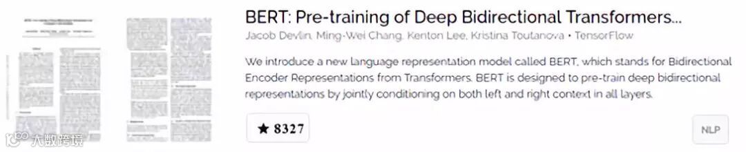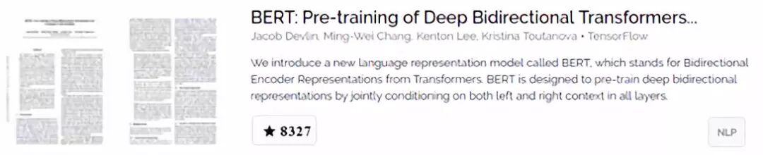 Google AI的BERT论文在10月份引起了深度学习界的关注。本文提出了一种深度双向编码器模型,该模型可实现11种NLP任务的最先进性能,包括斯坦福问答(SQUAD)数据集。 Google AI开源了他们论文的代码,这是深度学习库类别中,获得最多的“星星”的开源代码。