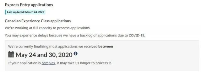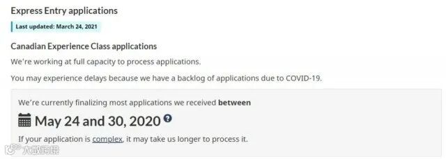 截至目前,IRCC正在处理那些在2020年5月24日至5月30日期间提交的加拿大经验类(CEC)申请,也就是大概在10个月前提交材料的申请者。
