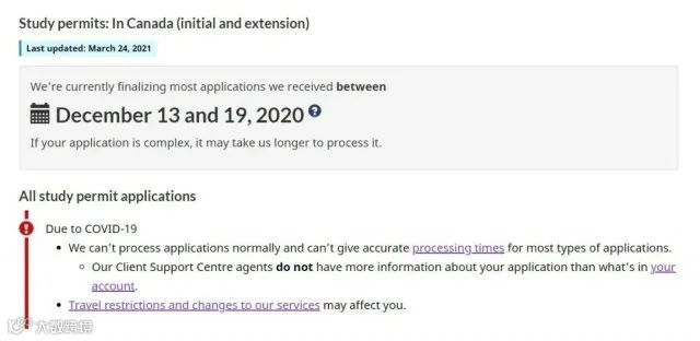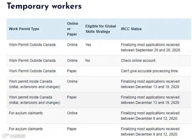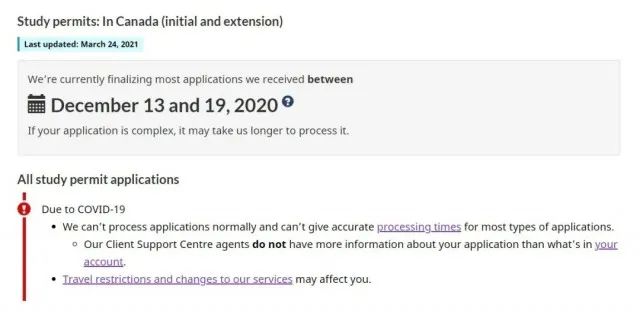 IRCC目前正在处理2020年12月13日至12月19日之间的学签申请,包括申请新的学签、续签以及实习工签。