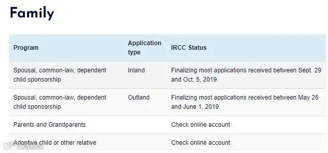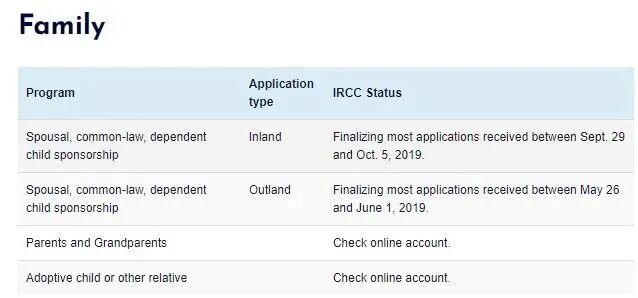 情况一(配偶移民,且在加拿大境内):正处理2019年9月29日至10月5日之间的申请。