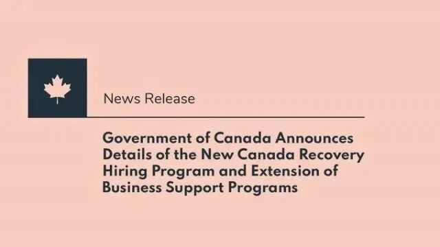 Government of Canada Announces Details of the New Canada Recovery Hiring Program and Extension of Business Support Programs
