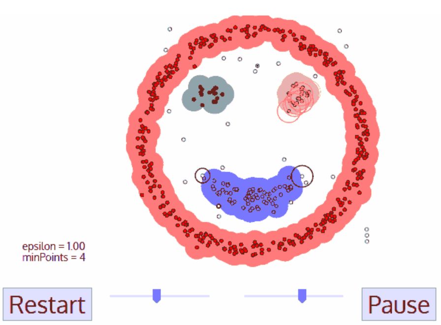 DBSCAN 是一种基于密度的聚类算法,它类似于均值漂移,但具有一些显著的优点。请看下面的另一个有趣的图形,让我们开始吧!