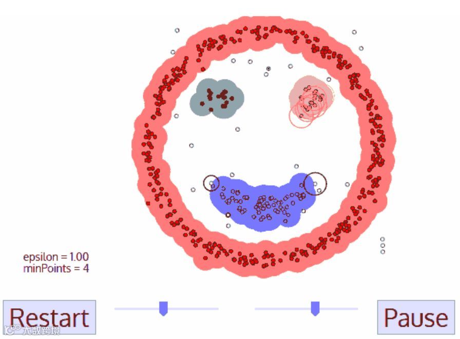 1. DBSCAN 从一个没有被访问过的任意起始数据点开始。这个点的邻域是用距离 ε(ε 距离内的所有点都是邻域点)提取的。