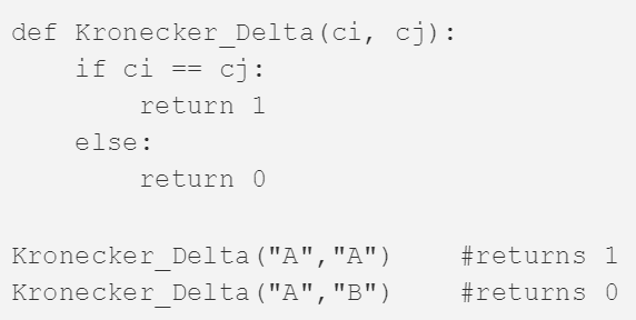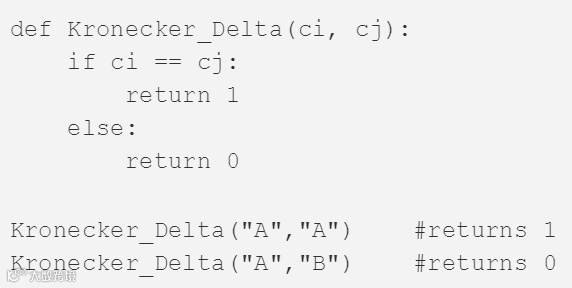 最后的 δc_i, c_j 就是大名鼎鼎的克罗内克 δ 函数(Kronecker-delta function)。下面是其 Python 解释: