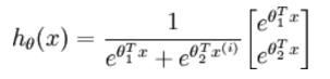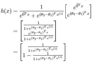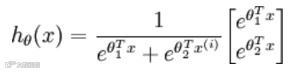 logistic回归针对的是二分类情况,而softmax解决的是多分类问题,若softmax回归处理的是二分类问题,则表达式如下: