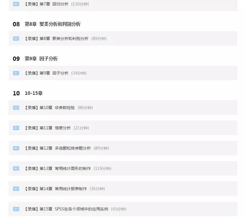本课程系统介绍SPSS统计分析方法、软件案例操作、统计结果解读,讲解过程由浅入深,提供应用案例供读者实战练习,旨在让读者快速入门,并通过上机实战熟练掌握软件工具、统计方法的实际应用。