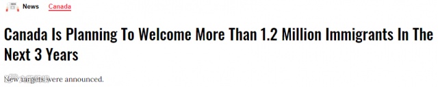先前的计划为2021年接收35.1万新移民,2022年接收36.1万新移民。也就是说,在最新的计划中,加拿大每年会多收5万新移民。